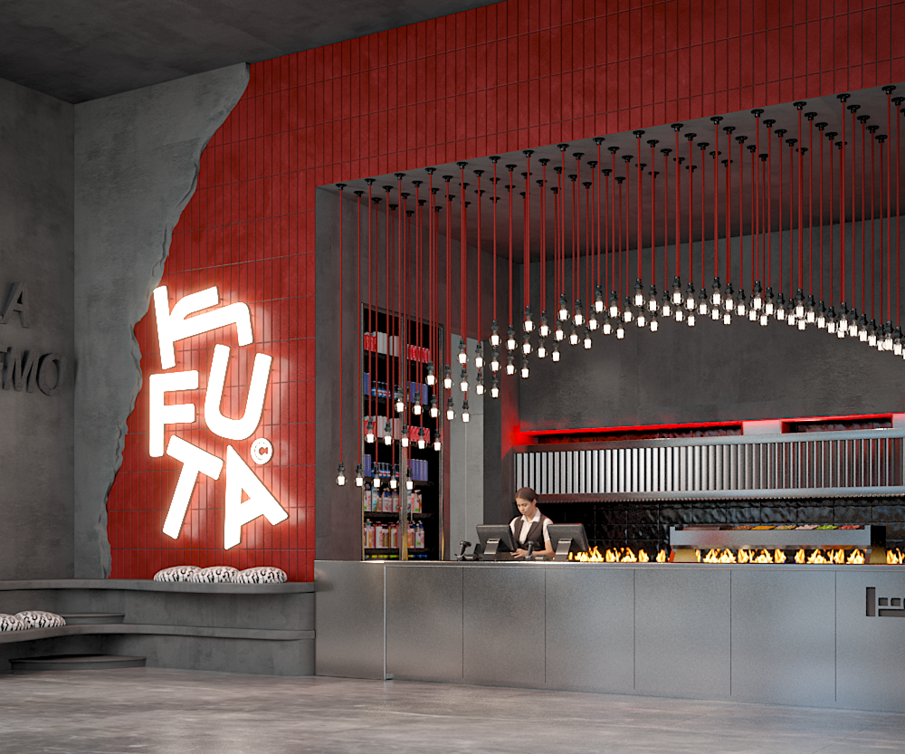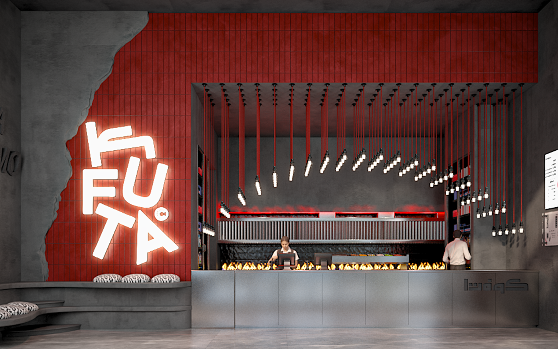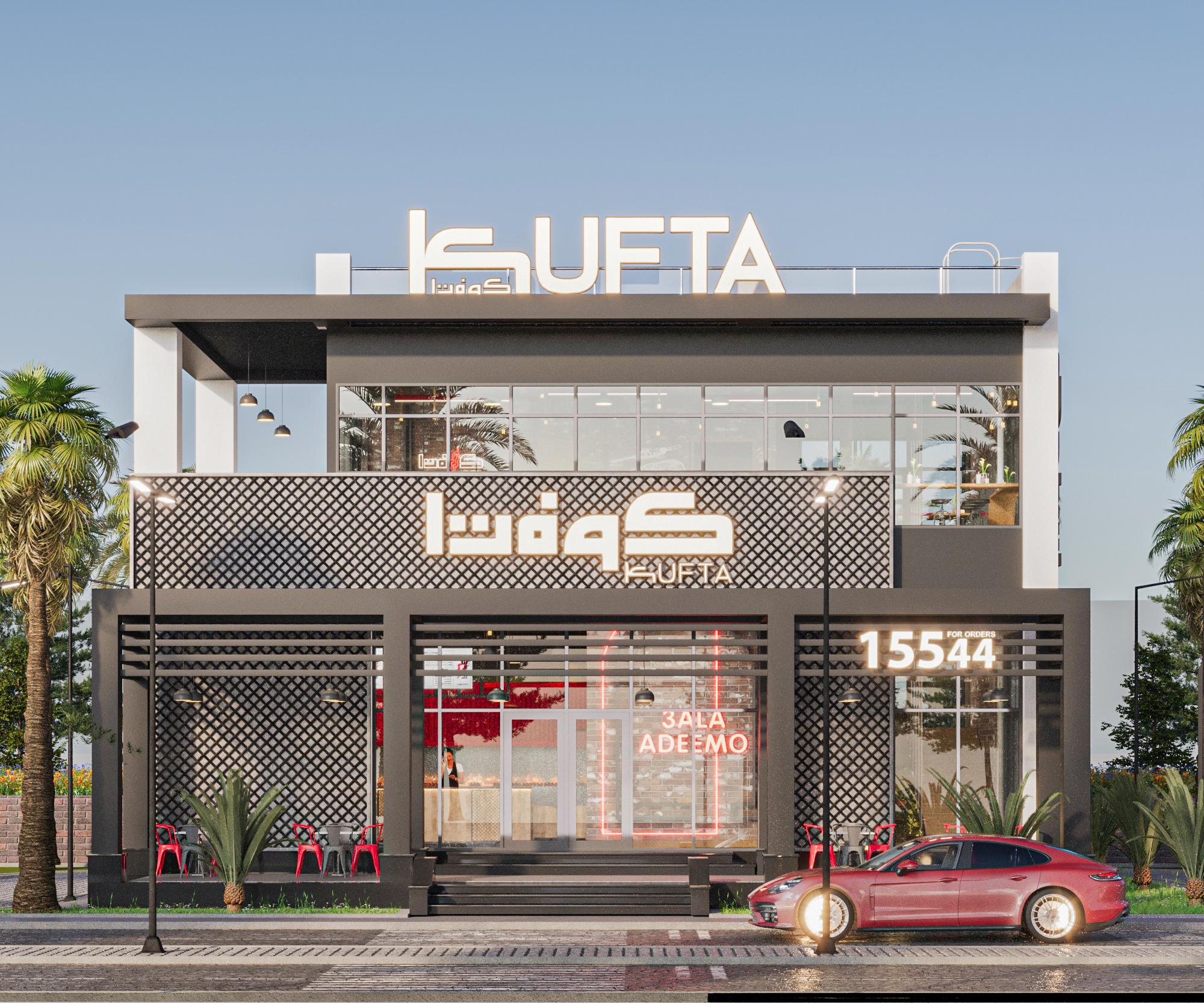 KUFTA is a modern restaurant project executed by AKM Constructions, featuring a functional layout and refined finishes that enhance both operational efficiency and customer experience. The design creates an inviting dining atmosphere while reinforcing the brand’s visual identity.