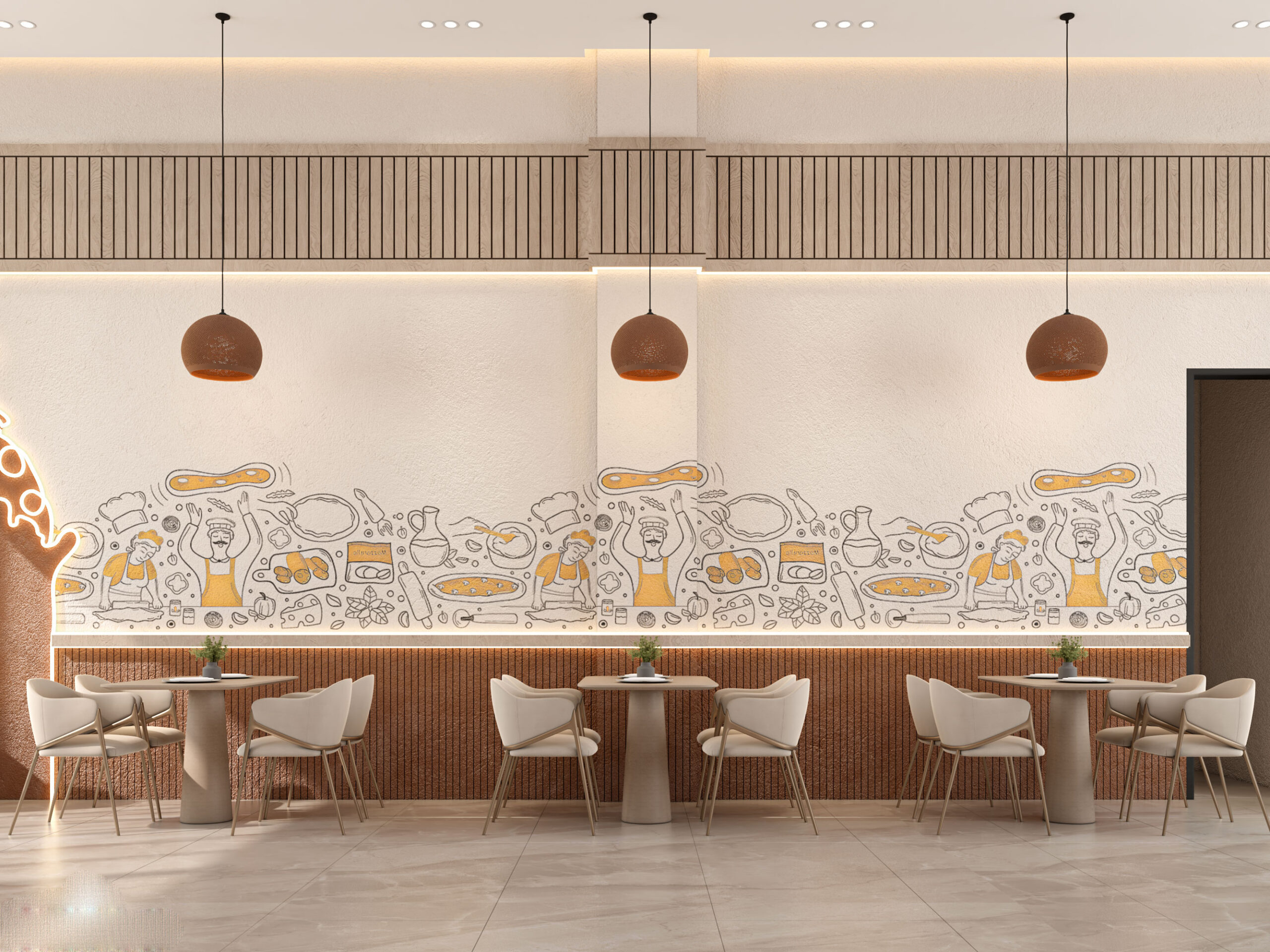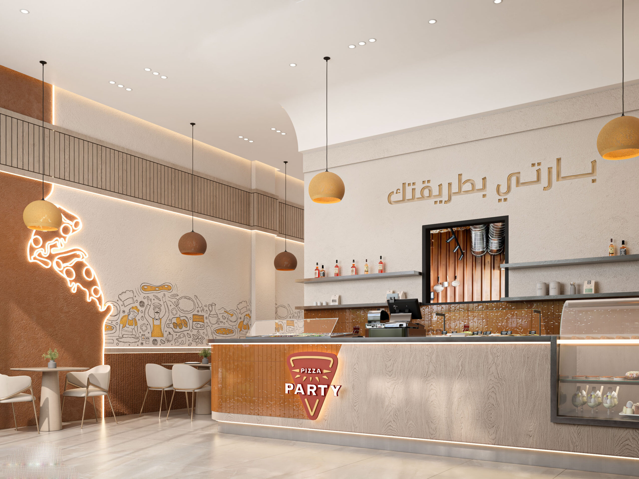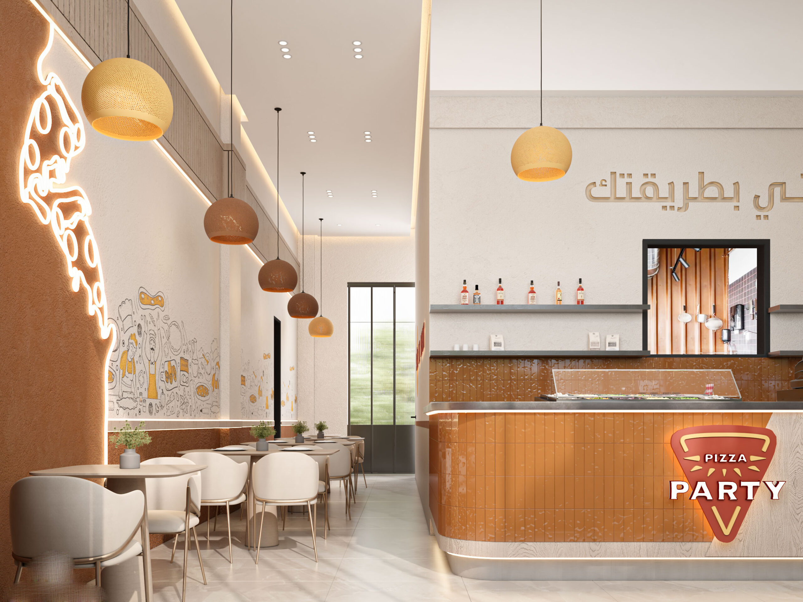 Pizza Party is a modern commercial restaurant project executed by AKM Constructions, designed to create a lively and welcoming dining atmosphere. The space combines efficient layout, durable finishes, and contemporary design elements that strengthen the brand’s identity and enhance the overall customer experience.